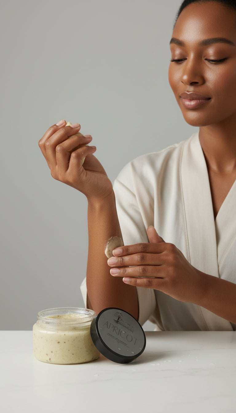 Apricot Body Scrub is easy to use. Simply scoop a small amount of scrub onto your hands, massage it into your skin, and rinse it off with warm water. Use it once or twice a week for a deeply nourishing experience.