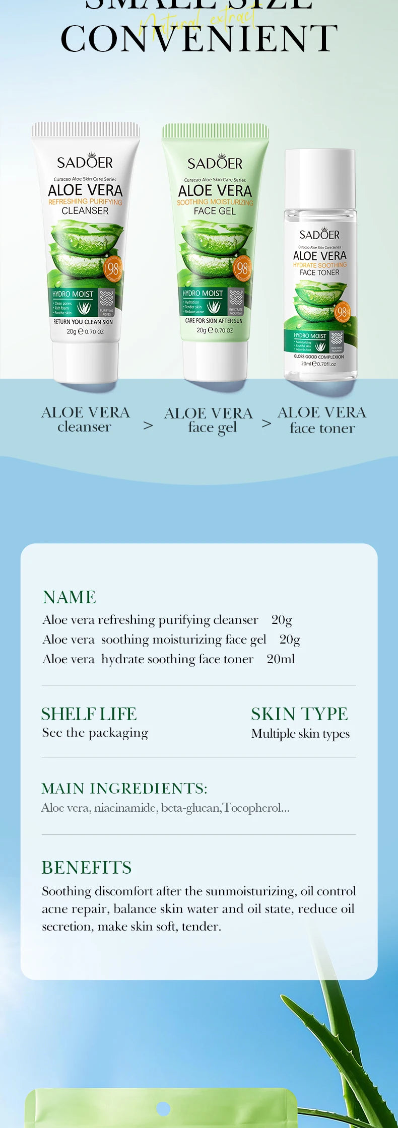 SADOER Aloe Vera Travel Three-piece Set (Foreign Language Edition) 20ml+20g+20g
