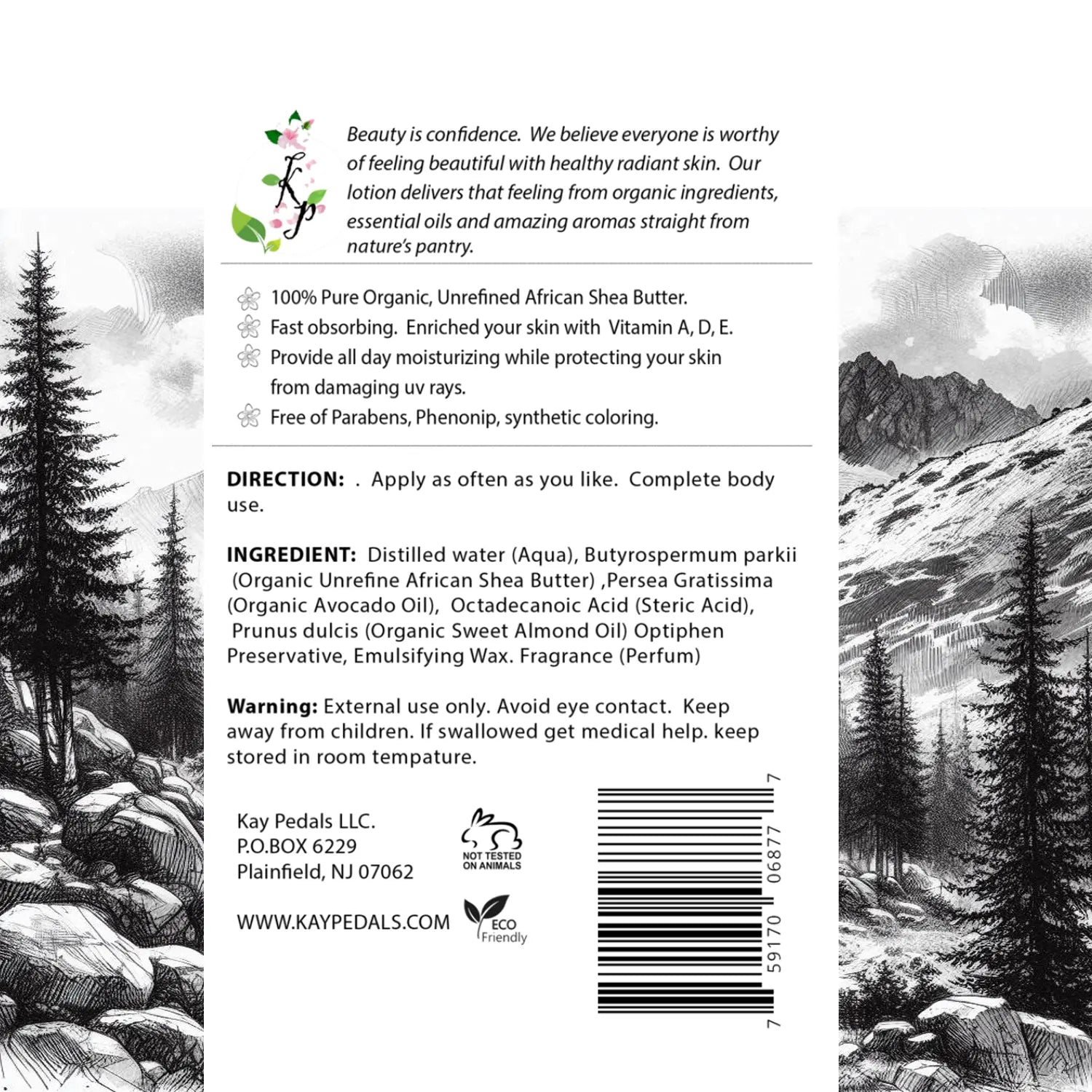 Pamper your skin with our luxurious Organic Timber Spring Scented  Body Lotion, handcrafted to perfection using only the finest organic ingredients. This deeply moisturizing lotion is formulated to nourish and hydrate your skin, leaving it feeling soft, smooth, and rejuvenated.