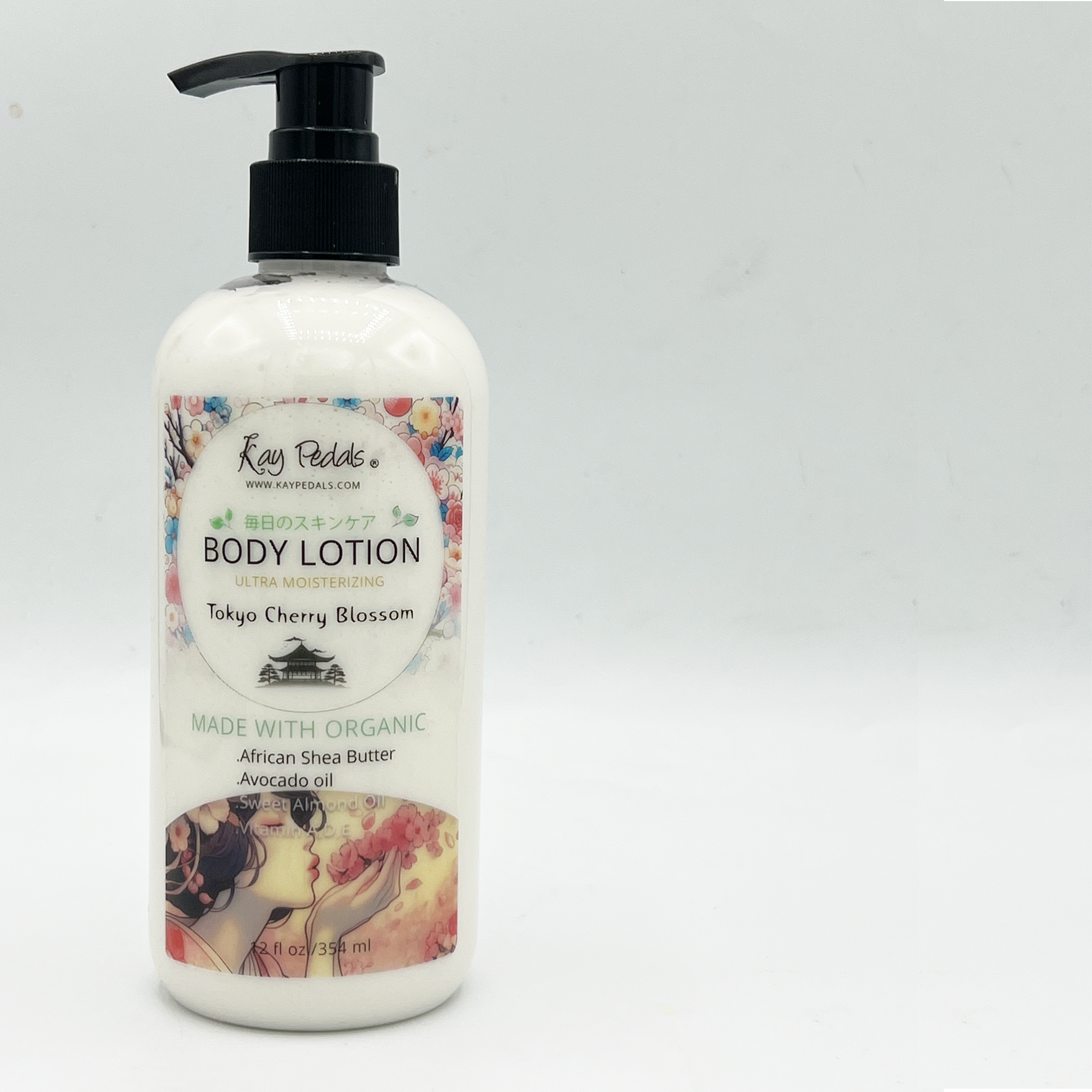 Pamper your skin with our luxurious Organic Tokyo Cherry Blossom Scented  Body Lotion, handcrafted to perfection using only the finest organic ingredients. This deeply moisturizing lotion is formulated to nourish and hydrate your skin, leaving it feeling soft, smooth, and rejuvenated.