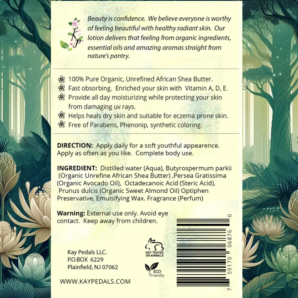 Organic Unrefined Shea Butter: Known for its rich emollient properties, shea butter penetrates deeply into the skin, providing intense moisture and a silky-smooth texture.